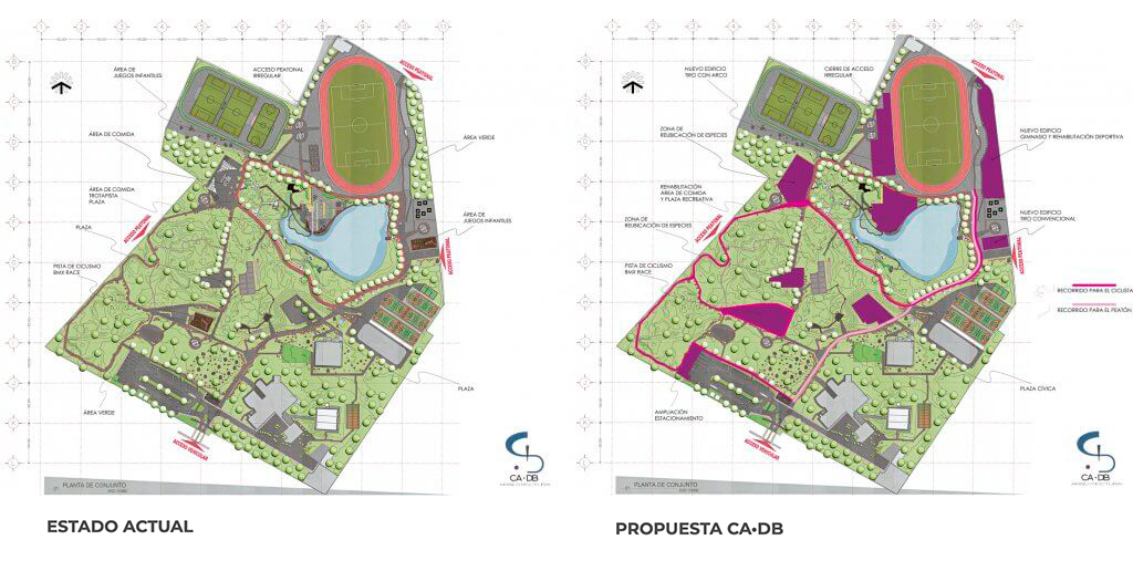 La perspectiva de CA·DB se basa en el enfoque integral del espacio, es decir, desde su entono hasta el usuario, localizando puntos elementales para explotar su máximo uso y mejorar su funcionamiento, brindando espacios exclusivos para peatones y ciclistas, un espacio para el desarrollo de un nuevo deporte, BMX, que incursiona entre los olímpicos desde el 2008, la propuesta de nuevos accesos peatonales y la restricción de otros para la conservación de áreas verdes y deportivas y el diseño de una zona de comida a orillas de la tirolesa, espacio que también fue intervenido para su rehabilitación y rescate de fauna.