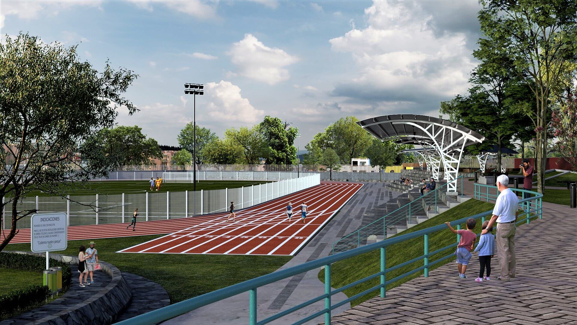 Este Parque Ecológico ubicado en la CDMX es intervenido por CA·DB con las premisas de renovar, transformar y detonar las áreas subutilizadas en el mismo, así como, como el esbozo de nuevos espacios, uno de ellos denominado “el estadio” el cuál posibilitará la participación de atletas de alto rendimiento en los deportes como atletismo y fútbol, este será dotado con materiales de la más alta calidad para su óptimo fin. Sumando dos espacios más para deportes como tiro con arco y tiro convencional los cuales son diseñados desde las normativas oficiales para la practica de dichas actividades, brindando espacios con un diseño arquitectónico innovador inherentes a la funcionalidad requerida.